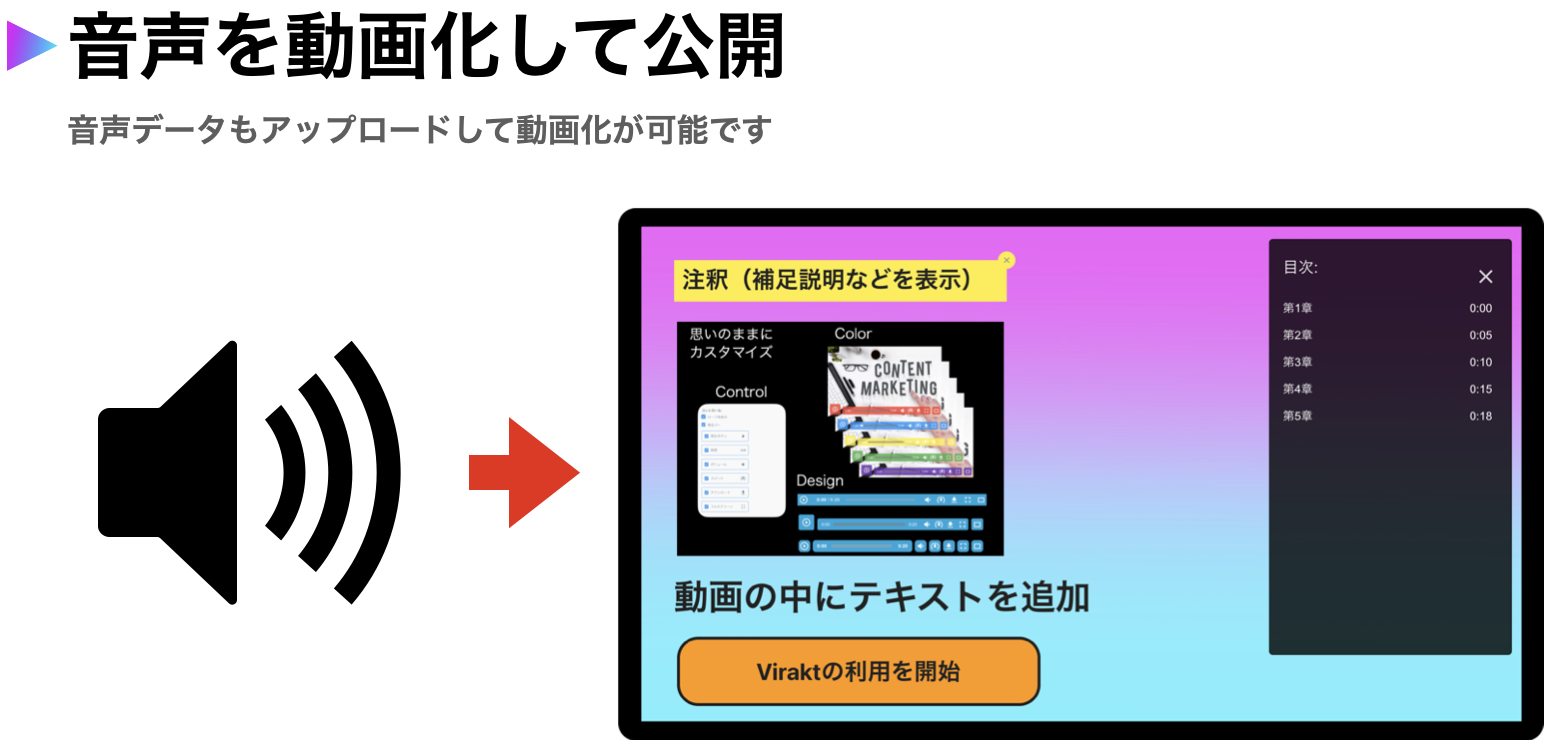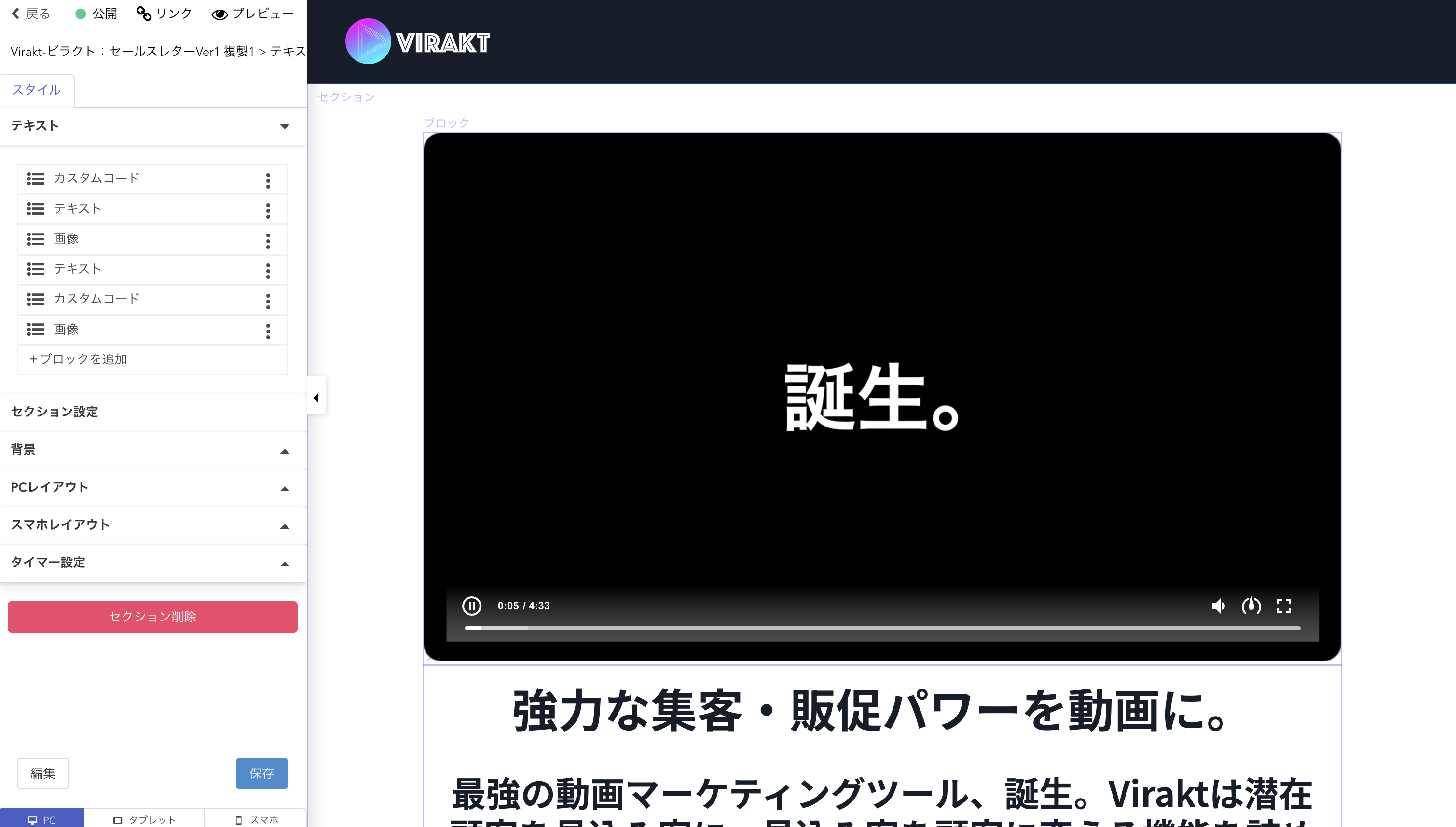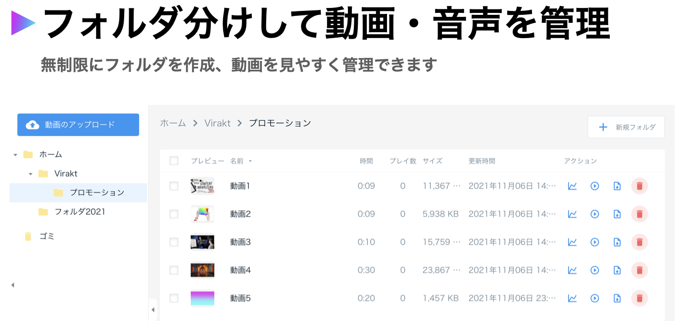 ストレスなくすぐ動画を再生。簡単に動画視聴ページで動画を公開できます。ブランドロゴ、キャッチコピー、動画タイトル、コメントなどの表示・非表示を細かく設定可能。集客・セールスの目標に向けたシンプルかつ強力な導線ページに仕上がります。さらにページの公開期限設定も可能。限定性のトリガーを使ったマーケティングにも力を発揮します。動画の埋め込みコードも1クリックで発行できるので外部サイトへの埋め込みも簡単です。